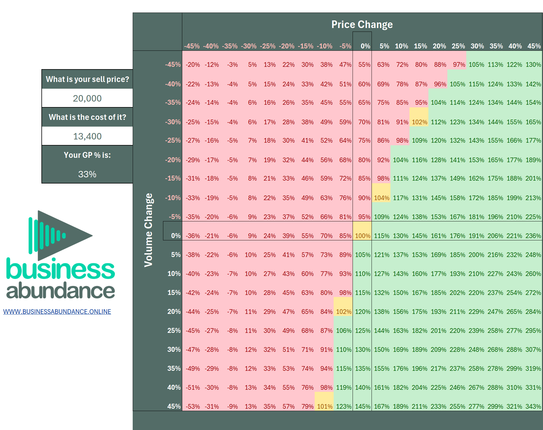 This calculator shows you exactly what changing price and volume does to gross profit, so you can make the decision with your eyes open.
