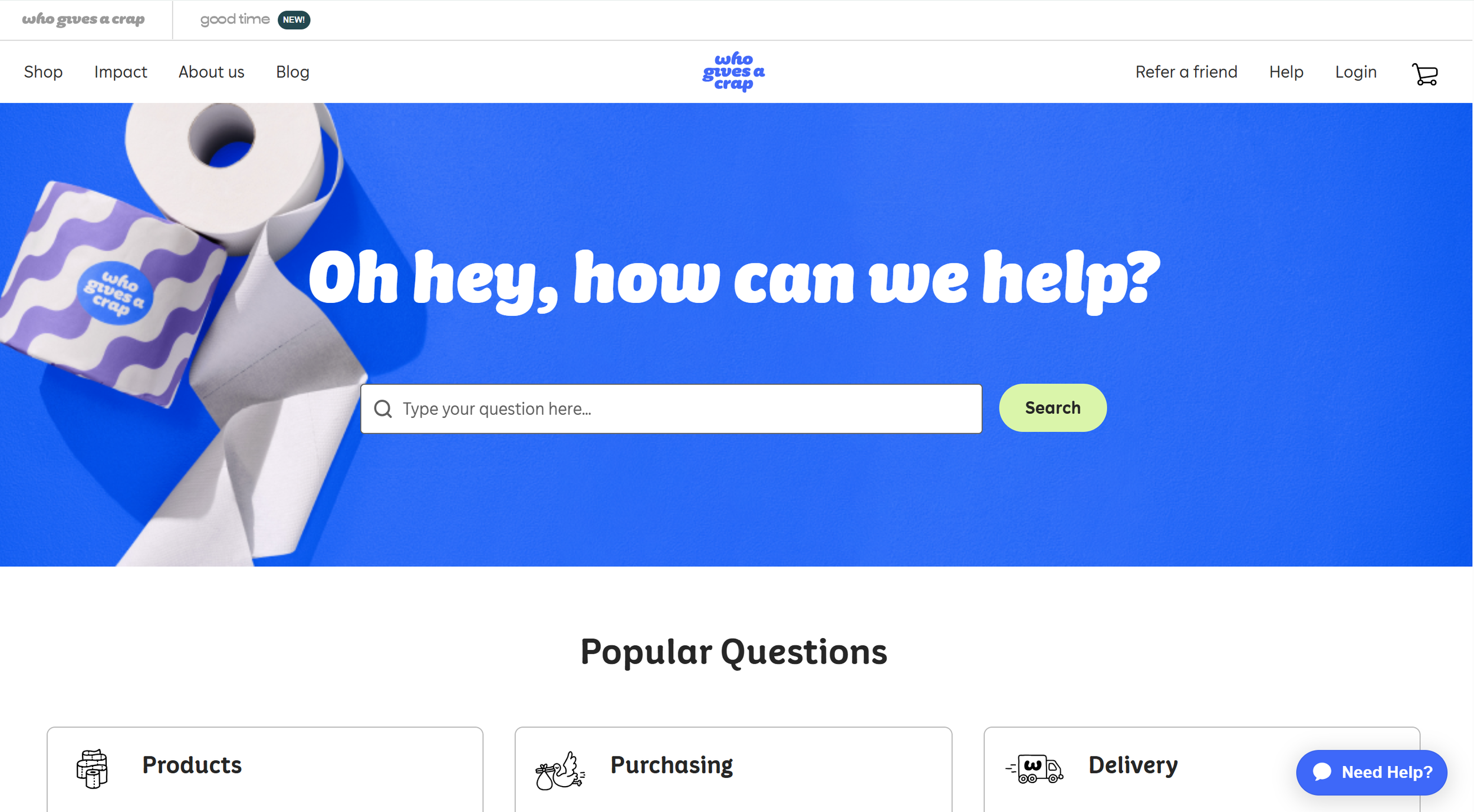 Let’s break it down using a great example. The Who Gives a Crap website does this really well, and small businesses can take a page from their book.