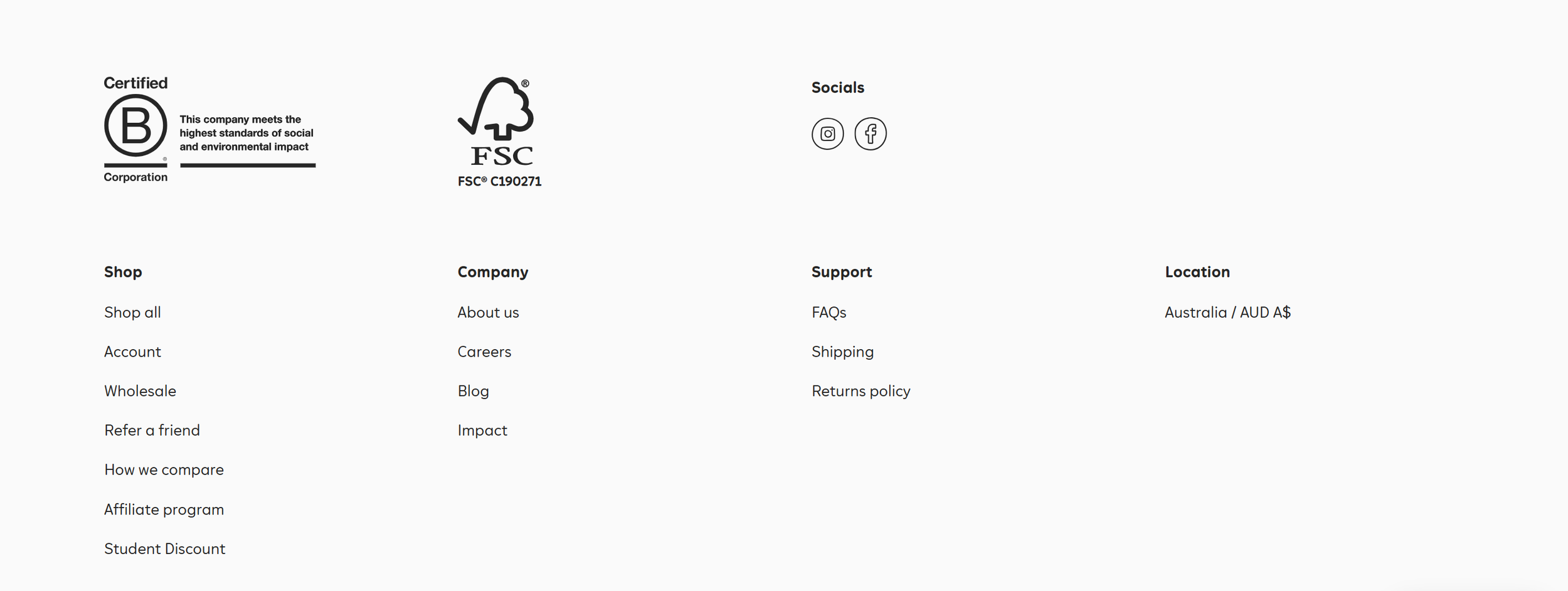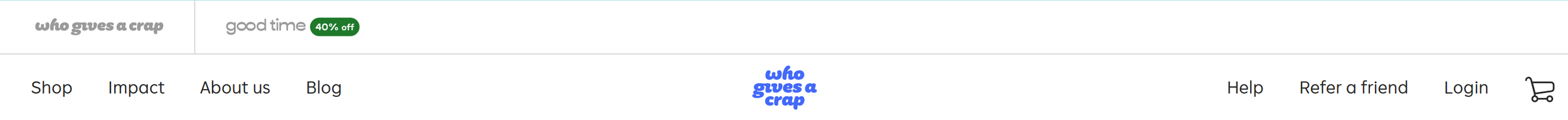 Shop | Impact | About | Blog | Help | Refer a friend | Login — That’s it.